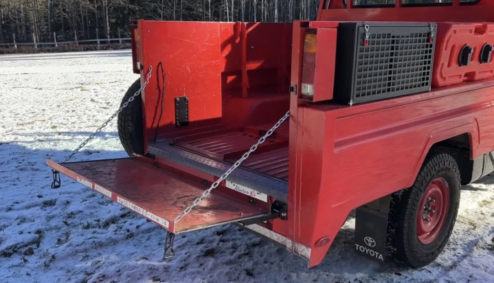 原厂消防车的后斗带消防笼、水管、水泵,还有三个消防员专属座椅,却没有尾门,装载物品极易掉落。怀亚特动手改造,把后斗内置货架改成简易尾门,虽说是临时改装,却完美解决装载难题,日常拉货、放行李都稳妥,彻底适配家用需求。